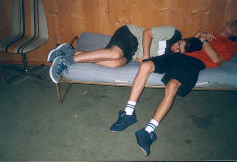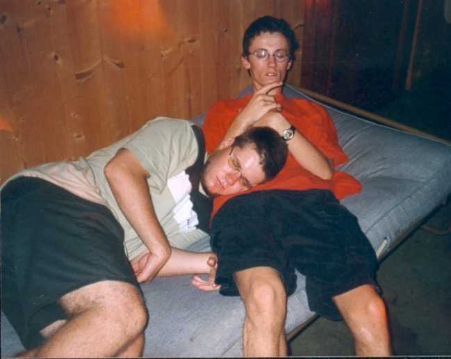 Note : ces 2 sympathiques personnages n'ont pas fini la soirée ici, ils ont été se poser sur un vrai lit un peu plus tard. Knupfi a de plus volé le sac de couchage de Vince car il avait oublié le sien. Le pauvre Vince s'est ainsi réveillé sans couverture et tout rafraichi ! La vie est parfois injuste ;o)
