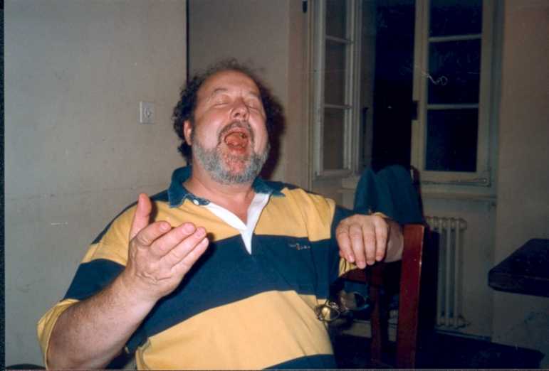 Ceci est notre professeur de français ET notre vénérablissime titulaire de 5ème année (décidément, il l'aura voulu :)), qui a l'air de bien s'amuser et qui nous fait découvrir ses belles cordes vocales ! Qui disait que le corps professoral ne savait pas faire la fête ?